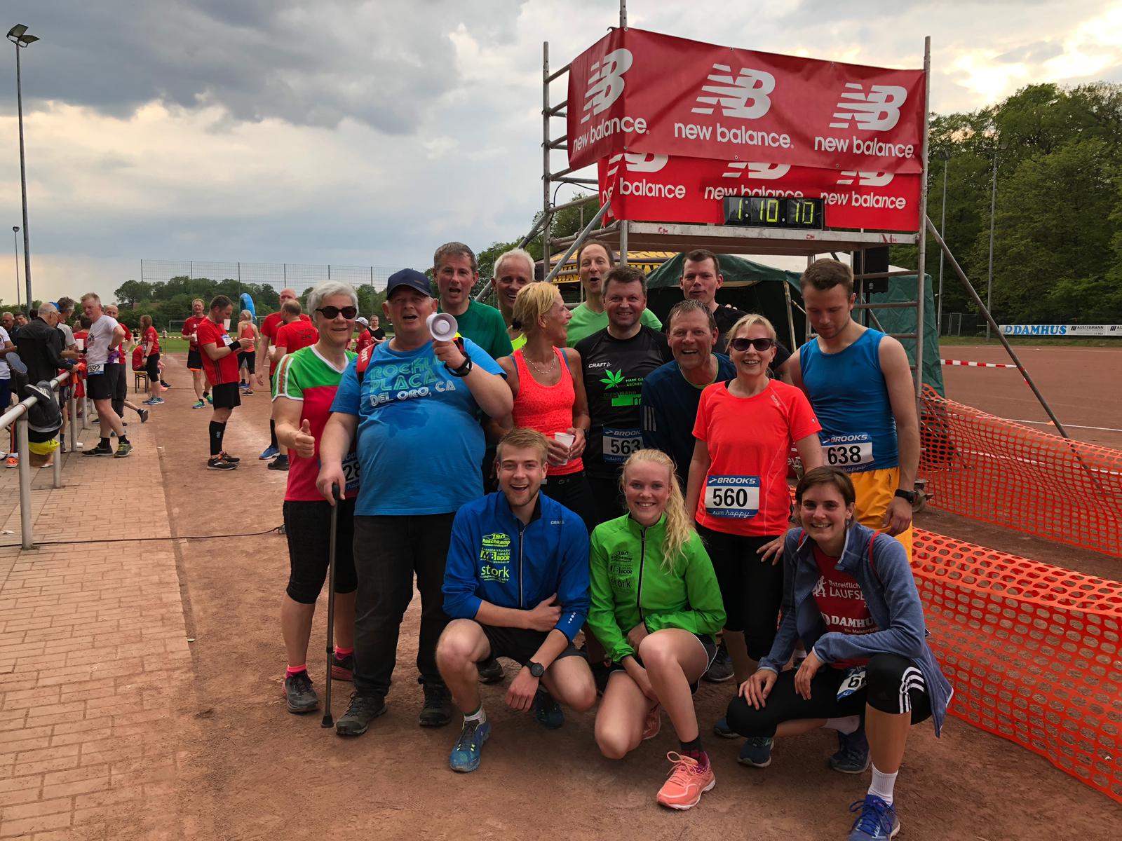 Am Samstag den 18.05.2019 hat der 4. Streiflichter-Serienlauf in Dülmen/Hiddingsel stattgefunden. Der Lauftreff Lüdinghausen war mal wieder mit einer großen Truppe von 13 Läuferinnen und Läufern vertreten. Natürlich auch mit „Maskottchen Ecki“, der nicht mehr zu missen ist an der Laufstrecke mit seinem Megaphone. Trotz sommerlicher Hitze von 22 Grad Celsius und gefühlten 30 Grad Celsius liefen die 150 Läuferinnen und Läufer über die 10km Königsdistanz erstaunlich gut.  Erster im Ziel des Lauftreffs bei den Herren war Linus Nibbenhagen mit einer Zeit von 42:08min und Platz 2. der AK M. Bei den Damen war Lena Markfort mit einer Zeit von 47:04min bei dem Lauftreff ganz vorne und belegte einen ausgezeichneten 4. Platz in der Gesamtwertung. Danach folgten Jan Stork in 43:17min(1. AK M40),Lukas Ortmann in 45:26min (3. Platz AK M), Magnus Nibbenhagen in 46:01min, Thomas Holtmann in 47:32min, Matthias Stobbe in 48:04min, Christine Polarczyk in  48:37min, Hubertus Niehoff in 49:12min (2. Platz in der AK M60), Sassina Burmeister in 53:55min und dem 1. Platz der AK W55, Monika Huesmann in 59:42min und Silvia Lautenschläger in 63:33min. Nach dem Lauf gab es in großer Runde des Lauftreffs noch ein leckeres Kaltgetränk nach Wahl. Damit sind nun 4/10 Läufen der Serie abgeschlossen. Am kommenden Samstag den 25.05.2019 findet der 5. Serienlauf in Lette statt.